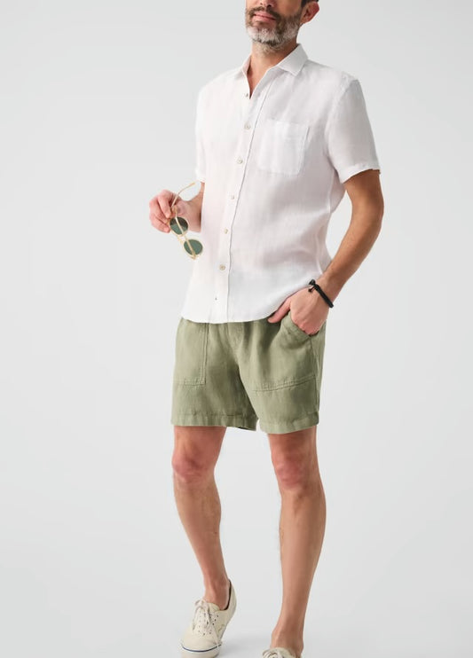 FAHERTY SHORT-SLEEVE LINEN LAGUNA SHIRT IN BRIGHT WHITE BASKETWEAVE