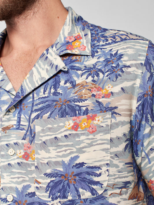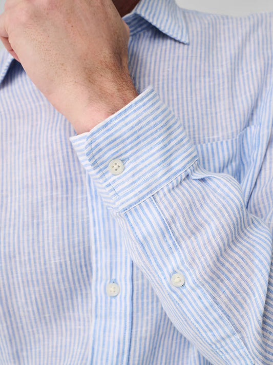 FAHERTY LINEN LAGUNA SHIRT IN SOUTH PACIFIC SWELL