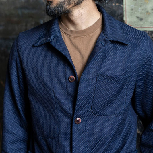 EPAULET DOYLE JACKET IN INDIGO JAPANESE COTTON SASHIKO