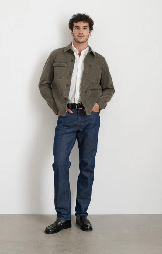 ALEX MILL GARMENT DYED WORK JACKET IN RECYCLED DENIM IN THYME