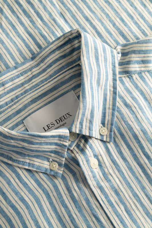 LES DEUX KRIS LINEN SS SHIRT IN WASHED DENIM BLUE AND IVORY