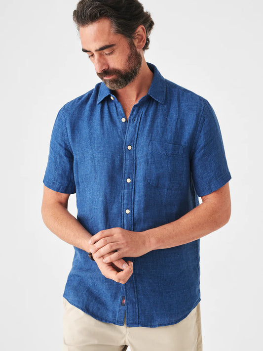FAHERTY SHORT-SLEEVE LINEN LAGUNA SHIRT IN INDIGO BASKETWEAVE