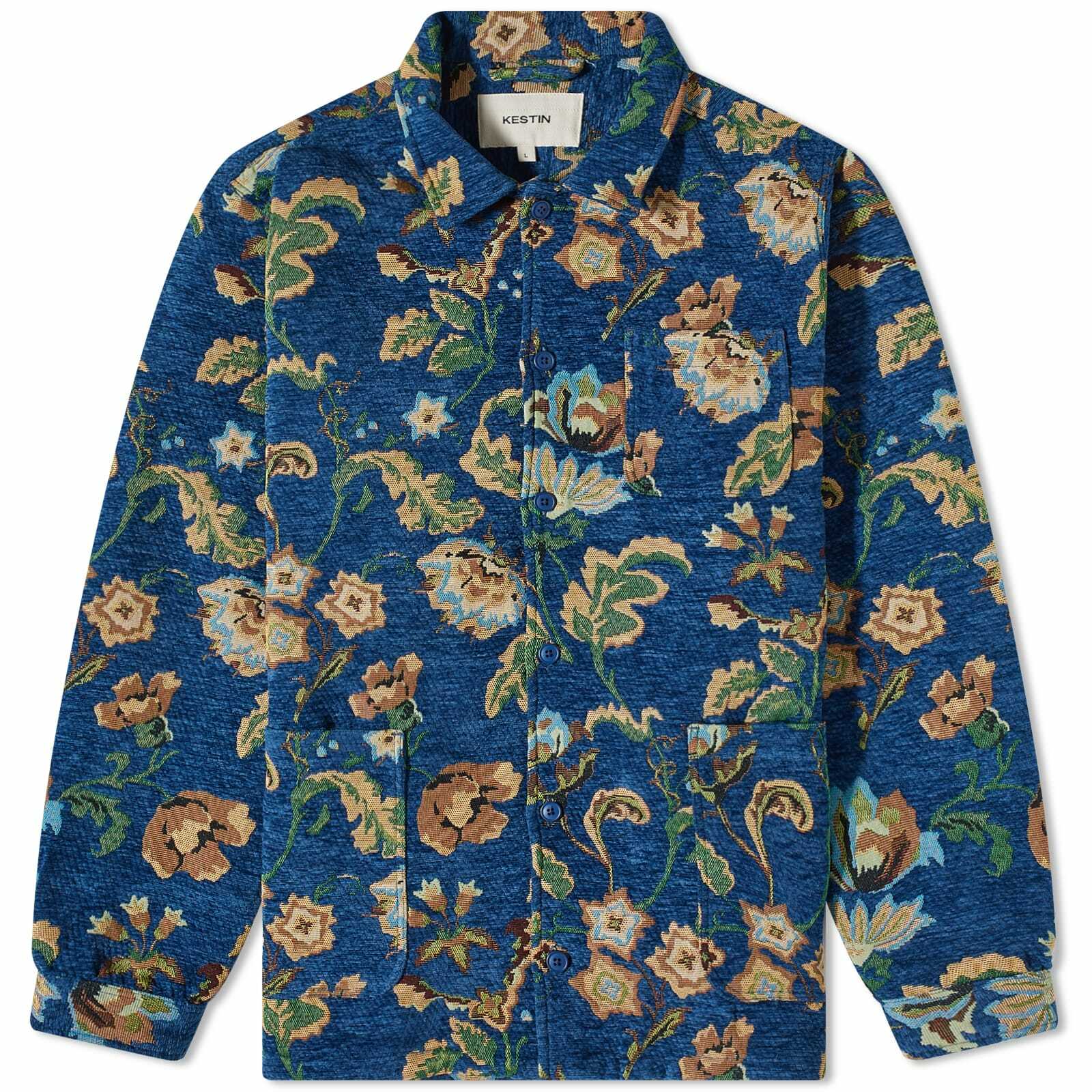 Cut from distinctive floral Japanese chenille jacquard fabric, this hybrid design is then punctuated subtly by three patch pockets for a workwear-infused finish. 100% Polyester, Button Closure, Chest Pocket, 2 Front Pockets, Made in Portugal. Kestin Men's Ormiston Shirt Jacket in Royal Blue Jacquard