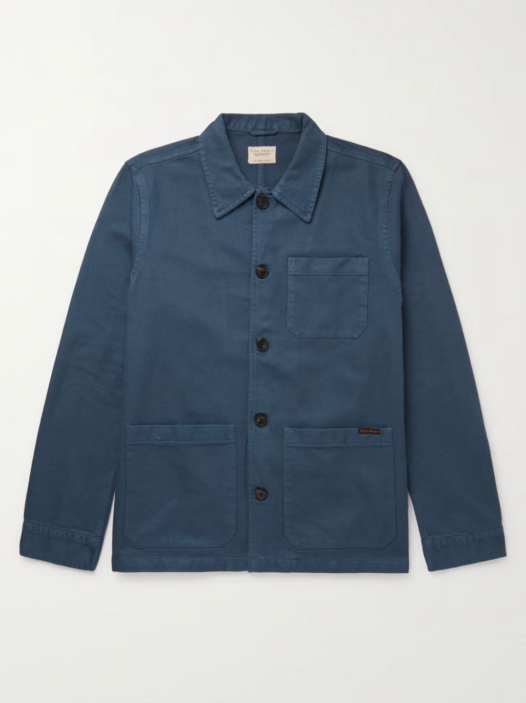 Nudie Jeans' 'Barney' jacket is cut from Fairtrade cotton-twill and has the same three patch pockets and pointed collar of traditional workwear styles. The slim yet boxy fit makes it easy to layer.