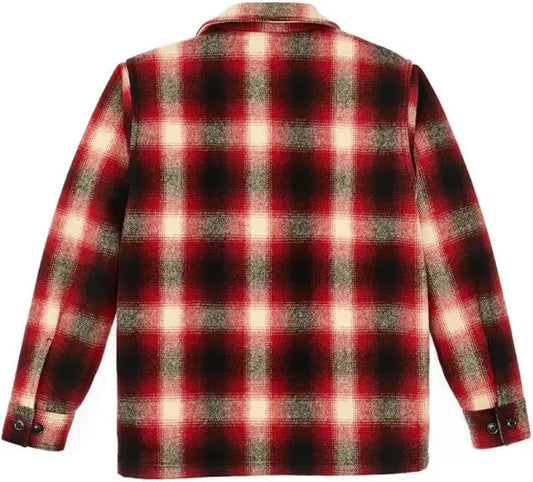 FILSON MACKINAW WOOL JAC SHIRT IN RED BLACK WHITE OMBRE