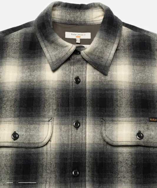 NUDIE JEANS GLENN PADDED SHADOW CHECK SHIRT IN BLACK