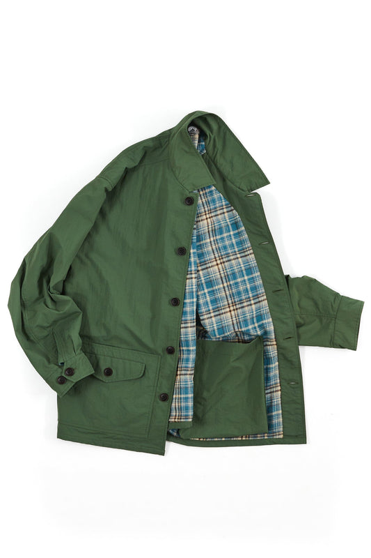 18 EAST POLLICA CHORE COAT IN SUMMER OLIVE MATTE NYLON RIPSTOP