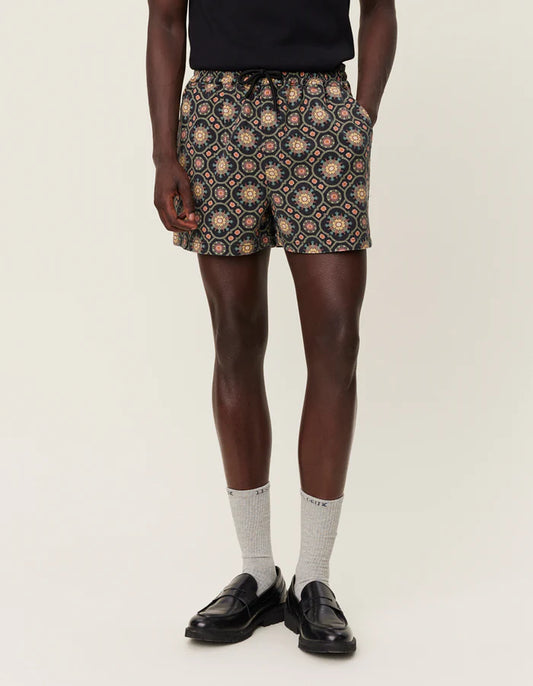 LES DEUX TAPESTRY SHORTS IN BLACK SURPLUS GREEN