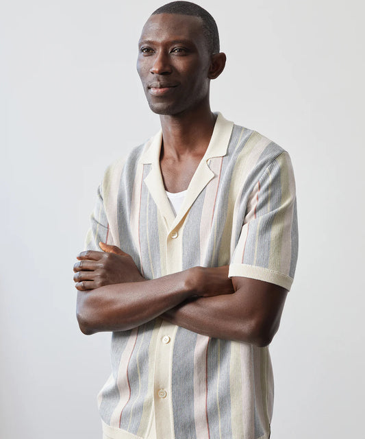 TODD SNYDER COTTON SILK STRIPE BUNGALOW POLO IN DUSTY LAVENDER
