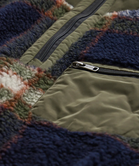 TODD SNYDER PLAID ADIRONDACK FLEECE HALF-ZIP MOCKNECK JACKET IN NAVY