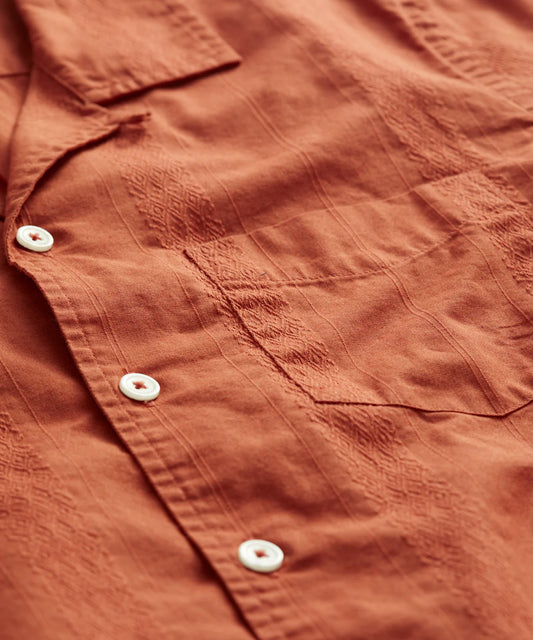 TODD SNYDER JACQUARD CAMP COLLAR SHIRT IN RUST