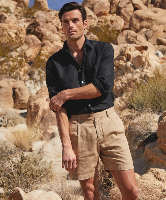 TODD SNYDER 7” PLEATED HUDSON SHORT IN BAJA DUNES