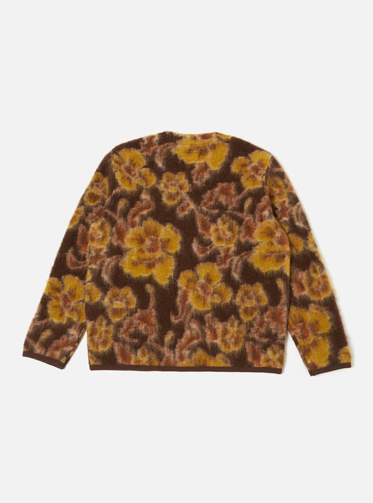 UNIVERSAL WORKS CARDIGAN IN BROWN FLOWER FLEECE